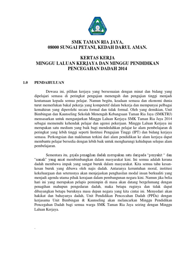 Surat pelantikan bagi agensi pekerjaan swasta untuk urusan dengan pihak. Selain itu ianya juga dapat memberi kesedaran kepada murid-murid supaya aktif kemasyarakatan. Universiti tun hussein onn malaysia kertas kerja program towards 1st class anjuran jabatan kaunseling dan kerjaya pusat pembangunan dan pengembangan pelajar 18.